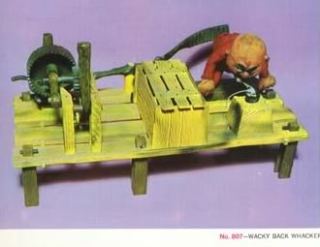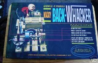 The “Assemble-it-yourself Wacky Back-Whacker” was a toy for kids. The makers, Aurora, produced a vast range of plastic models in kit form, some of them serious real things like cars and planes but also, as in this case, jocular fantasies. I thought that mouse trap was a strange toy.