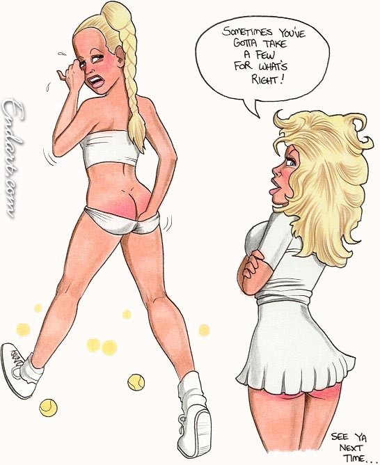 Nice! Tennis has such potential for spankings, with those short skirts ans racquets. Personally I took inspiration from the 1970’s Tennis Girl poster for a story on my site.