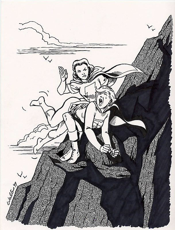 Adam Walters ink-and-colored-pencil creations are a hoot! Andy Price’s super hero spanking drawings used to be all over the web, too; he went to a “cartoonier” style some while back. Thanks for sharing, CS!